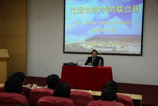 14日上午,沈国放大使为外国语学院师生作了“沈国放眼中的联合国”的专题演讲。(韩柏光)