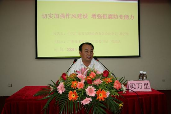 6月24日,伟德官网召开2008年纪律教育学习月活动“廉政大讲堂”专题报告会,邀请中共广东省纪律检查委员会副书记梁万里作了题为《切实加强作风建设,增强拒腐防变能力》的专题报告。学校党政领导、全体中层干部、教师代表和重点科室负责人共200余人参加了报告会。 梁万里同志在报告中通过分析近年来社会上和广东省高校发生案件的特点,阐述了新形势下加强领导干部作风建设的重要性和紧迫性。他强调,要大力倡导和努力实践“八个方面”的良好风气,即勤奋好学、学以致用;心系群众、服务人民;真抓实干、务求实效;艰苦奋斗、勤俭节约;顾全大局、令行禁止;发扬民主、团结共事;秉公用权、廉洁从政;生活正派、情趣健康。 梁万里要求,从自身做起,努力实现领导干部作风的进一步转变。一要不断加强世界观的改造,坚定共产主义信念;二要树立正确的权力观,正确运用手中的权力;三要树立正确的利益观,处理好个人利益和公共利益的关系;四要加强党性锻炼,自觉接受组织的监督。 梁万里指出,加强自身修养,提高拒腐防变的能力,就要自觉做到“七慎”,即慎始、慎微、慎好、慎欲、慎权、慎独、慎终。 学校党委书记邝邦洪同志主持报告会并作了重要讲话。邝邦洪指出“廉政大讲堂”专题讲座是伟德官网创新教育形式,是大力推进廉政文化进校园的重要教育载体,目的是教育党员干部尤其是领导干部,要充分认识反腐败斗争的长期性、复杂性、艰巨性;要常修为政之德、常怀律己之心、常思贪欲之害,廉洁从政、廉洁从教,真正经受住权力、金钱、美色的诱惑,永葆人民教师的高尚情操,坚定不移地推进反腐倡廉建设。 邝邦洪指出,梁万里副书记的报告注重理论与实际相结合,以大量事实说明了加强反腐败斗争的重要性和迫切性,对问题的分析十分深刻到位,说服力强,给我们以深刻的教育意义和启迪意义。 邝邦洪向与会同志提出了两点要求:一是希望学校各级领导干部要把梁万里副书记报告中的主要内容和主要精神传达到本单位的干部和教师中,让更多的领导干部和教师、职工受到教育,认真抓好“八个方面”的良好风气的建设,真正做到廉洁从政、廉洁从教,办好人民满意的高等教育;二是希望学校各级领导干部要注重加强作风建设,严格自律,不断增强拒腐防变能力,要警钟长鸣。要认真学习、认真思考、认真落实,走好自己的人生之路。(纪委办 谢蔚) |