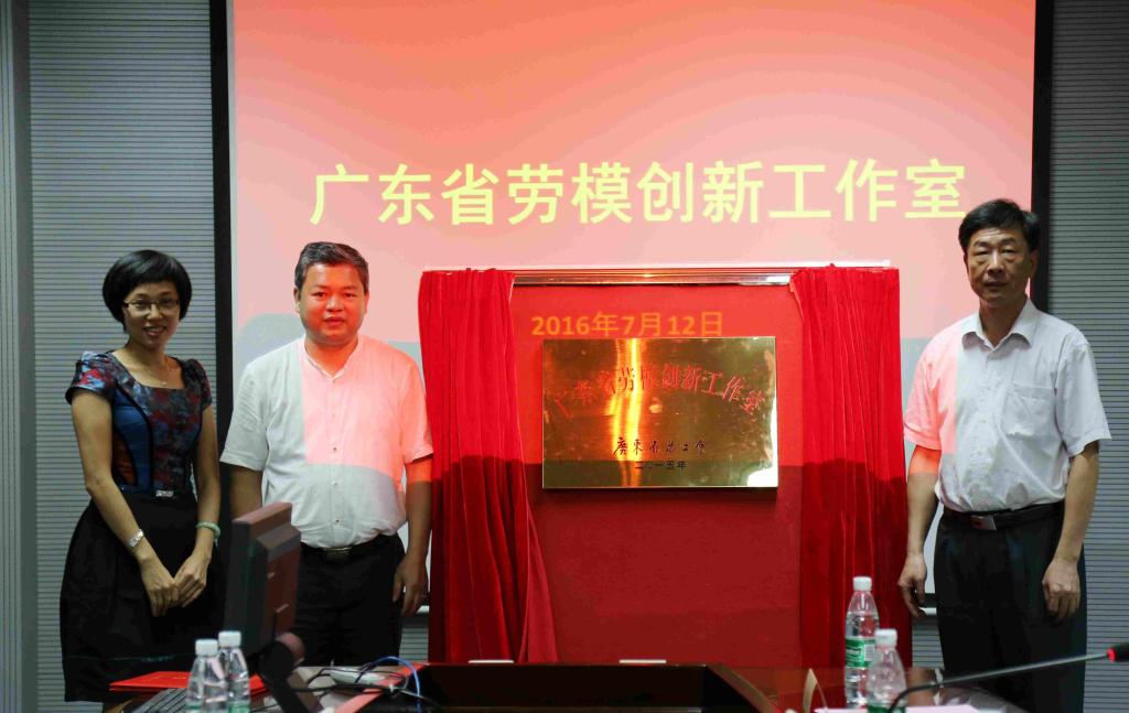 7月13日下午,“广东省劳模创新工作室——陈小花劳模创新工作室”在我院揭牌,广东省总工会常委、省教科文卫工会主席陈昭庆出席揭牌仪式。学院党委副书记、工会主席詹步强,校工会委员、各分工会主席、劳模创新工作室成员代表以及工会专职干部参加了揭牌仪式。