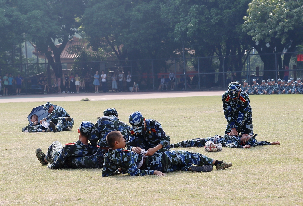 随后,军训团进行了青春舞曲、警棍术、战场救护等综合汇报表演,充分展示了参训新生良好的精神风貌。