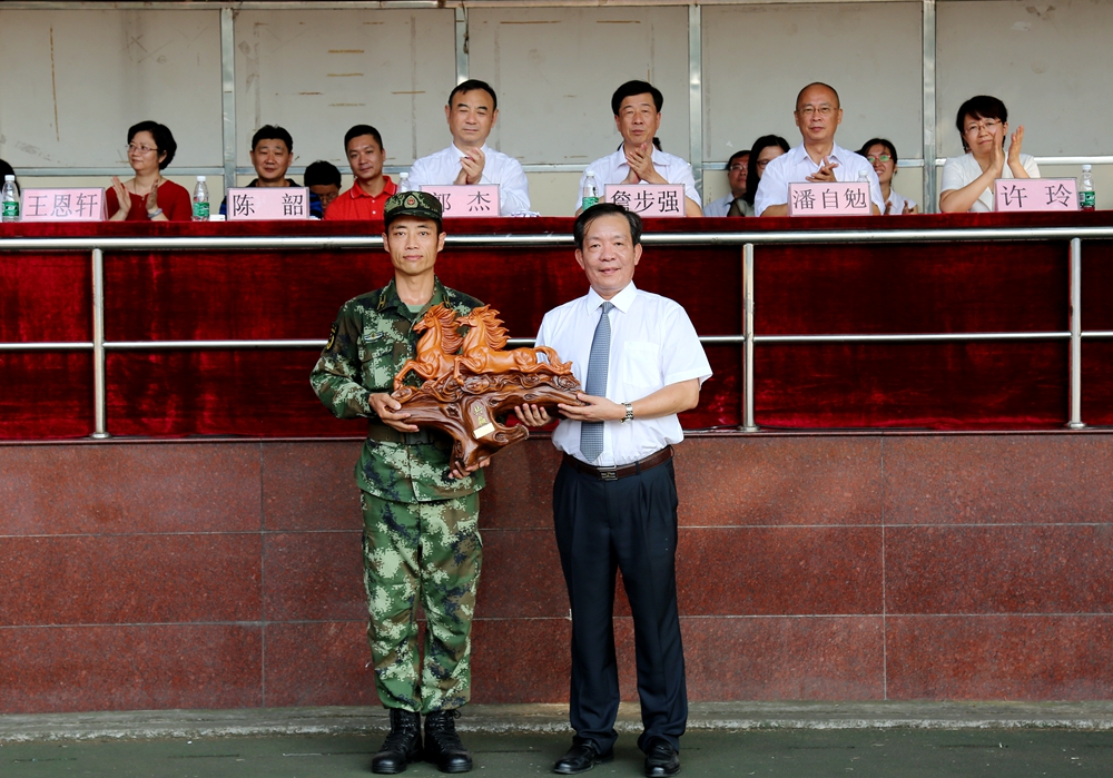 学院党委书记陈韶代表学院向承训部队赠送了纪念品。