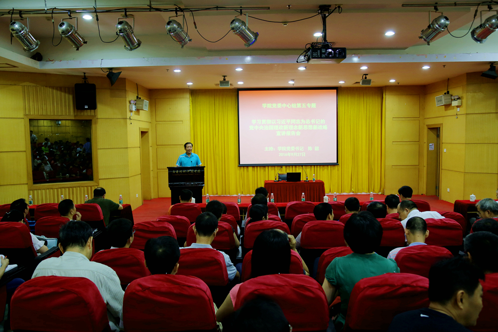 根据省委宣传部和省委教育工委有关治国理政新理念新思想新战略宣讲工作的统一部署,结合学院党委中心组学习安排,9月27日下午,我院在校本部一教208讲学厅举行学习贯彻“以习近平同志为总书记的党中央治国理政新理念新思想新战略”宣讲报告会。省委宣讲团专家、省社会科学院院长、中山大学博士生导师王珺教授受邀为大家作题为“如何推进供给侧结构性改革”的宣讲报告。出席报告会的有学院领导、学院党委中心组成员、二级党组织副书记、马克思主义学院全体教师、辅导员、教工党支部书记及学生代表等。宣讲报告会由学院党委书记陈韶主持。