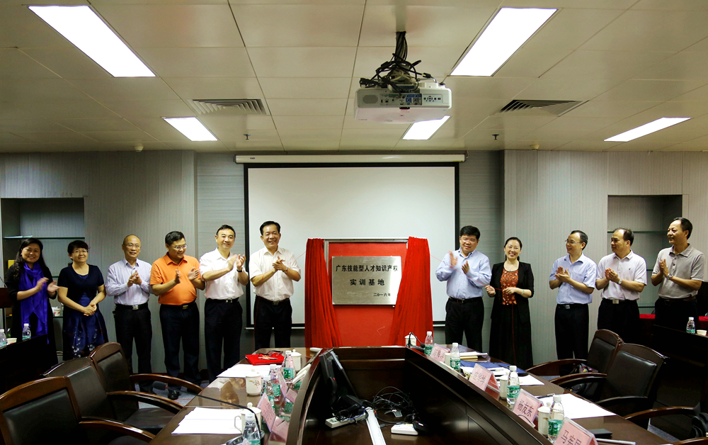 图为我院与广东省知识产权局共建“广东技能型人才知识产权实训基地”合作协议签约与揭牌仪式。