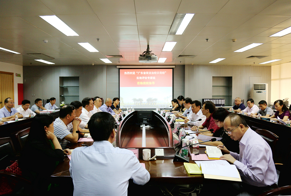 11月16日上午,“广东省依法治校示范校”实地评估自评报告会在我院工业中心605室举行。省教育厅“广东省依法治校示范校”专家组许国彬、李伟东、谢雄伟、王宇晖、熊嘉逸、彭文一行6人,对我院创建“广东省依法治校示范校”工作情况进行实地评估。广东省教育厅政策法规处调研员张耀荣参加了评估。全体学院领导、学院依法治校工作领导小组成员、相关职能部门负责人、学院法律顾问出席了自评报告会和专家组意见反馈会。