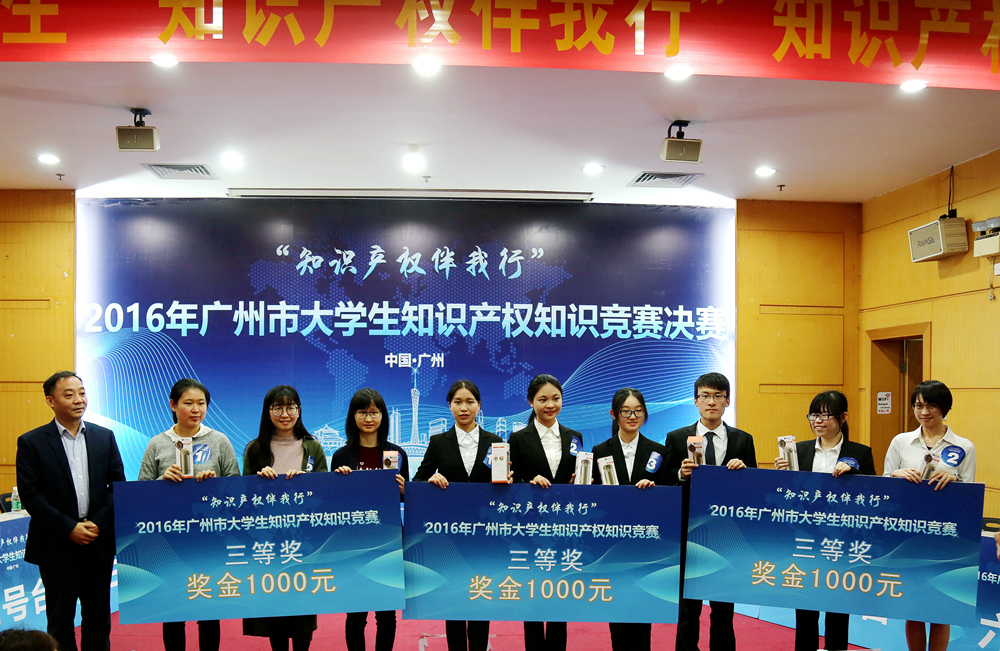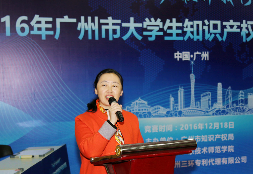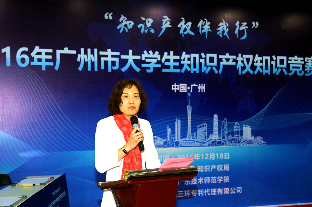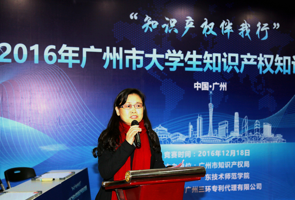 12月18日,由广州市知识产权局主办、广东技术师范学院承办、广州三环专利代理有限公司协办的2016年广州市大学生知识产权知识竞赛在我院一教讲学厅举行。广东省知识产权局副局长谢红、广州市知识产权局副局长陆志红、学院副院长戴青云、广东专利代理协会秘书长陈一忠、我院相关部门负责人等出席了竞赛活动。
