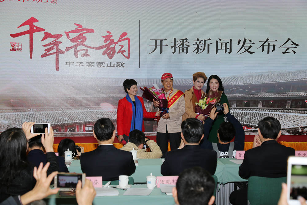 签约仪式后,双方举行了简单而隆重的合作成果纪录片《千年客韵——中华客家山歌》开播新闻发布会。现场领导和嘉宾参与了纪录片《千年客韵——中华客家山歌》启动仪式。