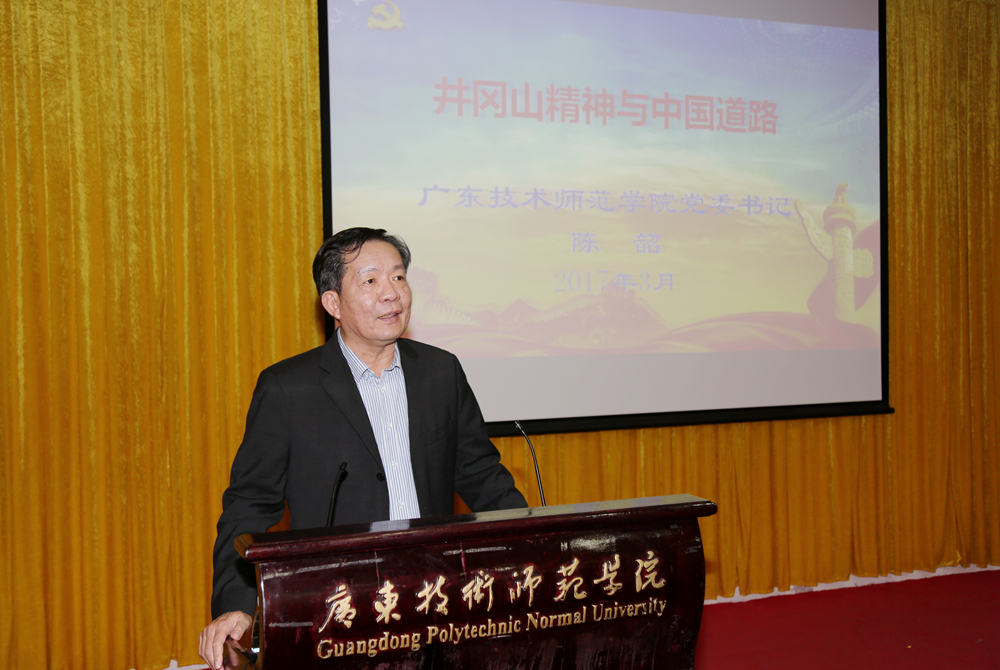 3月20日,由党委宣传部、马克思主义学院、学生处、团委主办的广东技术师范学院“2017年春季书记校长上第一堂思想政治理论课”在校本部第一教学楼208报告厅举行,学院党委书记陈韶主讲。相关职能部门负责人,相关二级学院书记、副书记、辅导员和大一、大二学生代表近300人聆听了第一课。