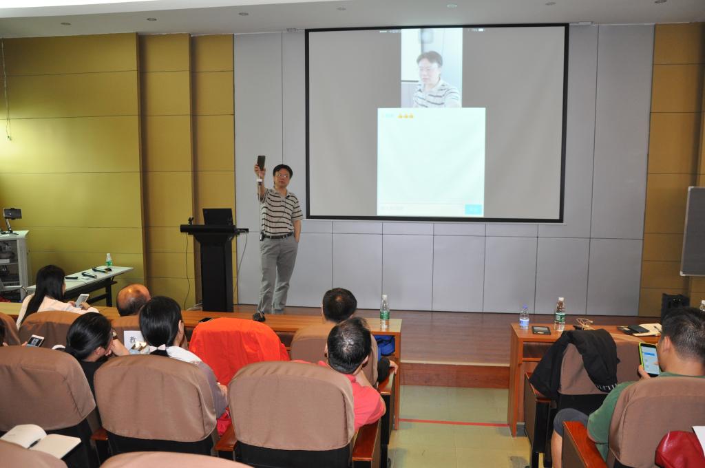 刘莘教授作题为《移动时代的教与学》专题报告。刘教授详细介绍了课堂教学改革的时代背景和理论依据。他认为,移动互联网时代是去中心化、中心变化的时代,新技术的应用给传统以教师为中心的课堂带来了严峻的挑战,教师必须从课堂的主导者变成课堂的组织者,重组课堂,以学生学习为中心,才能抢夺课堂的高地,才能让课堂生命体焕发新的活力。在实践操作环节,刘教授利用超星学习通APP与在座教师进行了有趣、高效的互动。
