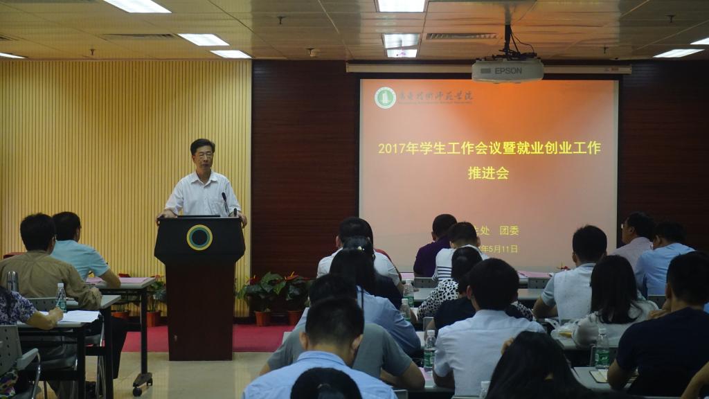 5月11日,学院在工业中心802室召开2017年学生工作会议暨就业创业工作推进会,学院党委副书记、纪委书记詹步强出席会议并作讲话,学生工作部(处)及团委全体干部、各二级学院主管学生工作的党委(党总支)副书记、全体辅导员参加了会议。
