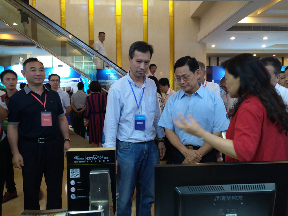 戴青云向陈云贤介绍我院科技成果总体情况;陈云贤非常关心我院科技成果的产业化情况,当得知我院赵慧民教授的科技成果“网络化压缩感知指纹安全认证关键技术”已在佛山成功实施产业化并取得较大经济效益时,陈云贤对我院的科技成果转化工作给予充分肯定。