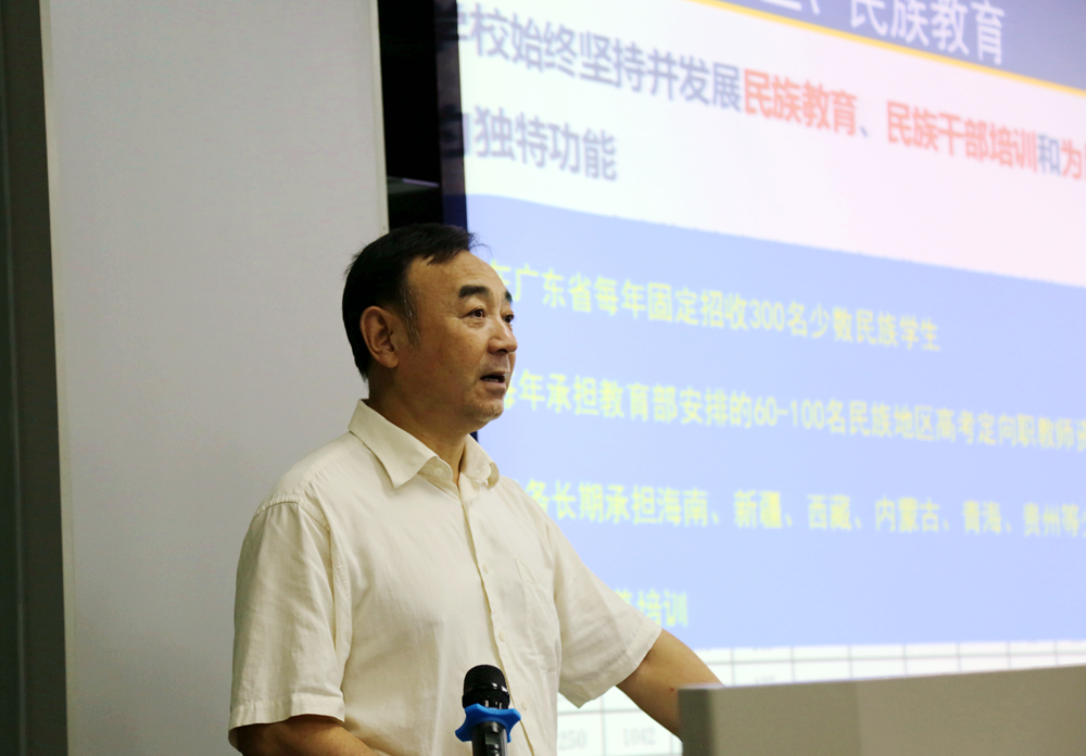 学院院长郭杰介绍了学院概况、学院发展历程、学院定位与发展规划,并主要介绍了我院职业教育、应用转型、民族教育的的办学特色。