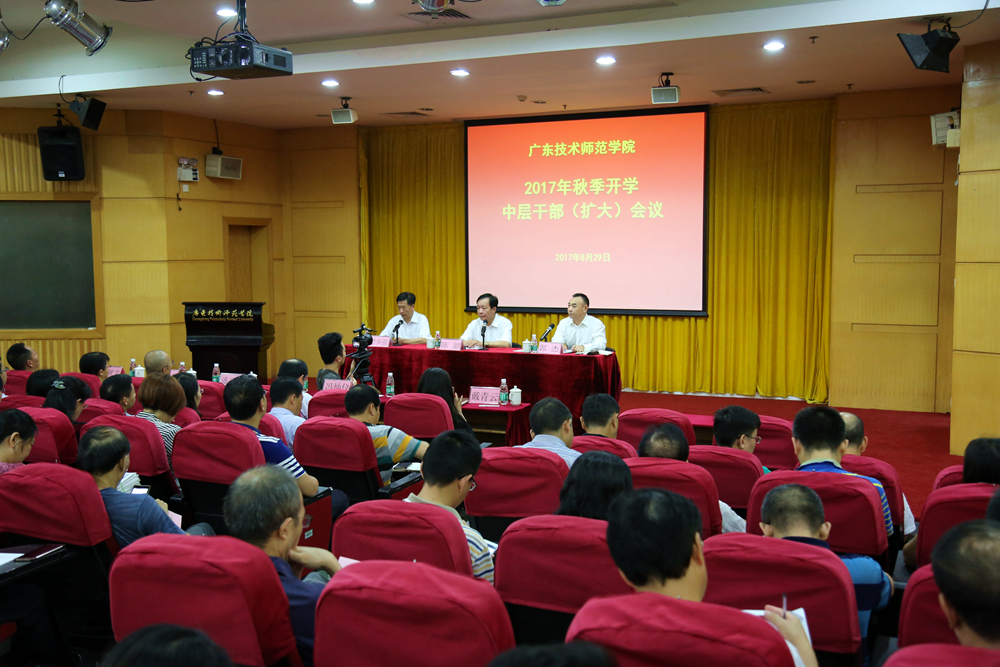 8月29日下午,学院召开2017年秋季学期中层领导干部(扩大)会议。学院党政领导,全体中层干部,专业负责人代表、系正副主任(不设系的教学单位为教研室正副主任)代表,正高职称人员代表,各级人大代表、政协委员,各民主党派负责人,部分党代会代表,部分“双代会”代表参加了会议。会议由学院党委副书记詹步强主持。