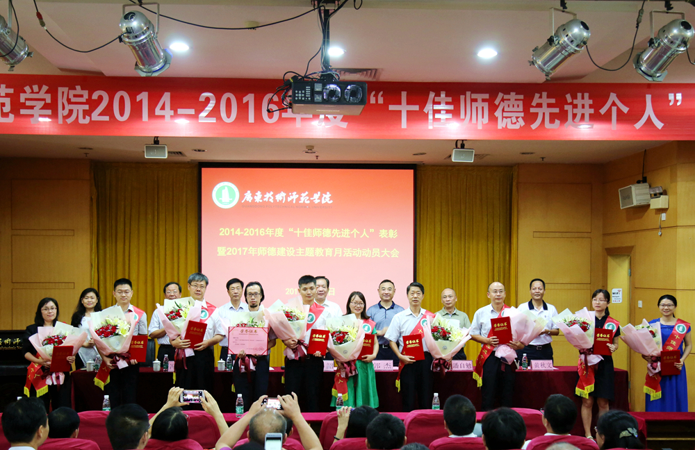 9月8日下午,我院2014—2016年度“十佳师德先进个人”表彰暨2017年师德建设主题教育月动员大会在校本部一教208召开。学院党委书记陈韶,学院党委副书记、院长郭杰,学院党委副书记詹步强,学院副院长潘自勉、冯灿仪、戴青云、黄秋文出席了会议。全体中层干部、系部主任、专业负责人、民主党派代表、师生代表和受表彰的“十佳师德先进个人”参加了会议。詹步强主持大会。