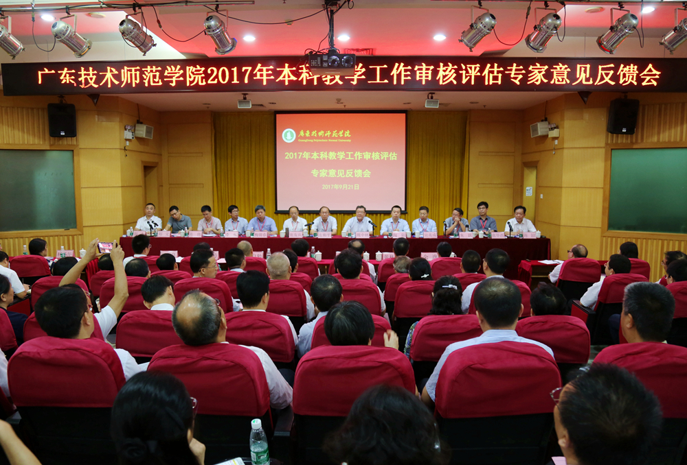 9月21日下午,广东技术师范学院本科教学工作审核评估专家意见反馈会在校本部学术报告厅举行。评估专家组全体成员,省教育厅党组副书记、副厅长魏中林,省教育厅高教处处长郑文,学院党政领导出席会议,学院机关各部处、二级学院、教辅单位负责人、教学单位专业负责人等参加了会议。反馈会由专家组组长、江西科技师范大学校长左和平主持。