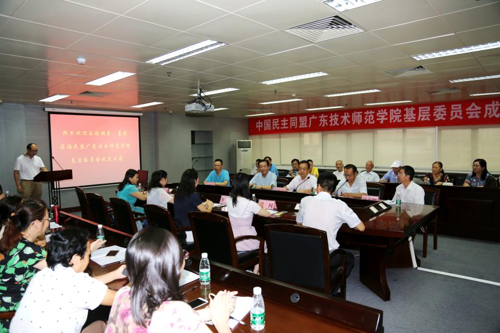 学院党委书记陈韶对王学成主委等民盟省委领导亲临学院指导工作表示热烈的欢迎,对民盟广东技术师范学院基层委员会的成立表示热烈祝贺,并感谢民盟基层组织以及各位盟员长期以来对学校所作出的积极贡献。他对新成立的民盟学院基层委员会提出四点建议:一是坚决执行民盟中央、盟省委和王学成主委对民盟学院基层委员会所作的指示和所布置的任务,结合学校的实际贯彻好、落实好。二是加强民盟的班子建设、组织建设。希望新成立的班子要建设成为66位盟员坚强的核心,在中国共产党领导下,夯实共同思想政治基础、践行共同核心价值观、建设共同的特色社会主义国家,始终保持同心同向同行。三是提高履职尽责的能力和水平,结合广东实际,积极开展调查研究,在不同的平台,代表民盟、代表广东技术师范学院多发声,多提高质量提案。四是围绕学校的中心工作,积极建言献策,为学校的“十三五”发展、更名大学、河源校区建设等作出更大更多的贡献。