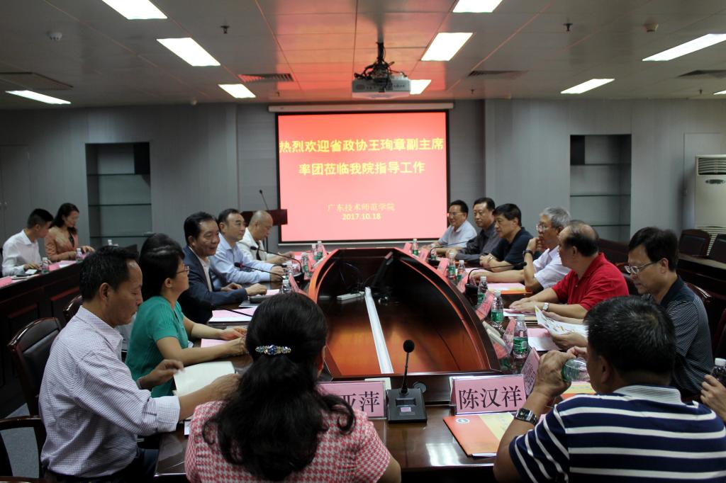 王珣章充分肯定了学院在改革与发展过程中取得的成绩,希望学院进一步加快建设步伐,创建特色鲜明的高水平技术师范大学,服务广东创建职业教育综合改革先进省和产业转型升级。他指出,政协委员要充分发挥好委员主体作用,这是政协围绕中心、服务大局、履行职能的基础和关键;政协委员要进一步增强责任意识,发挥自己的专业优势,在政协的平台上发挥作用,积极地履行参政议政、民主监督职责。他代表省政协感谢学院党委对省政协工作的支持和省政协委员的厚爱,希望学校继续大力支持省政协工作,支持省政协委员的参政议政工作。