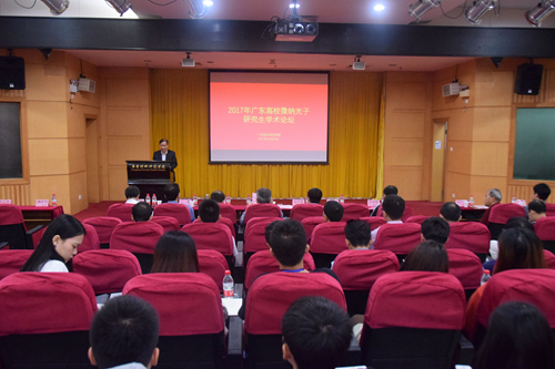 由广东省教育厅主办、我院研究生处和光电工程学院承办的“2017年广东高校微纳光子研究生学术论坛”日前在我院成功举办。来自中山大学、华南理工大学、华南师范大学、暨南大学、广东工业大学等高校的专家学者、博士生、研究生以及光电工程学院全体教师参加了本次研讨会。