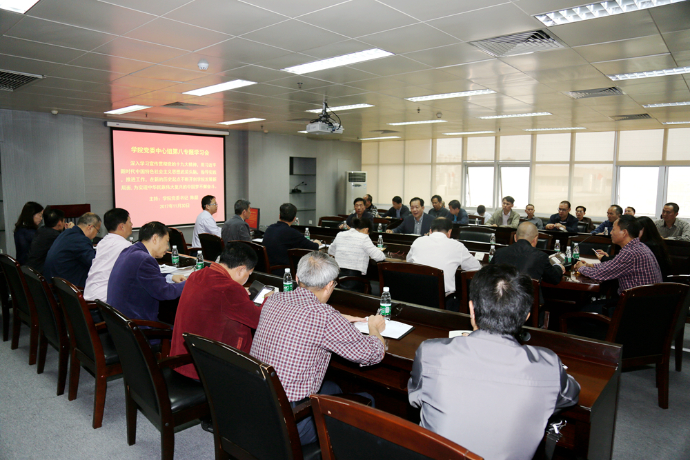 11月30日,学院党委中心组在工业中心605召开第八专题学习会,深入学习宣传贯彻党的十九大精神,用习近平新时代中国特色社会主义思想武装头脑,指导实践,推进工作,在新的历史起点不断开创学院发展新局面。党委中心组全体成员参加会议,会议由学院党委书记陈韶主持。
