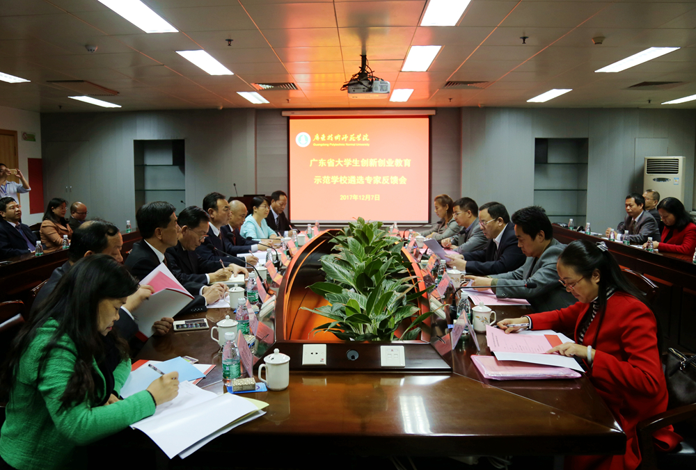 12月7日,广东省大学生创新创业教育示范学校遴选工作专家组一行对我院创建“广东省大学生创新创业教育示范学校”工作情况进行实地考察。专家组成员包括华南理工大学副校长李正、中山大学原创业学院常务副院长任荣伟、华南理工大学就业中心主任雷育胜、肇庆学院教育督导与评估中心主任李佩环、吉林大学珠海学院招生就业处处长刘冰。学院领导、学院相关职能部门负责人、各二级学院负责人出席了会议。
