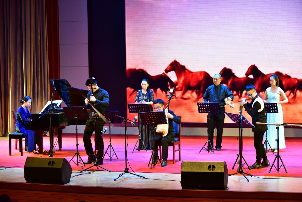 12月19日、20日,由我院音乐学院师生组成的民乐演出团队,分别走进汕尾职业技术学院和韩山师范学院,受到两校师生的热烈欢迎,汕尾职业技术学院谢南斌院长为音乐会致辞,韩山师范学院党委副书记、纪委书记林光英为音乐会赠送纪念品,两校有关职能部门和二级单位部分负责人及1000多名师生出席并观看了音乐会。民乐专场音乐会演奏的节目有:民乐合奏《战马奔腾》《梁祝》《之子于归》《九儿》《瑶族舞曲》,古筝协奏《临安遗恨》,二胡协奏《野蜂飞舞》,琵琶独奏《天山之春》,笛子协奏《白蛇传》,独弦琴演奏《过桥风吹》等10多首经典作品。每一首作品的展示都从其创作的时代背景、思想内涵、风格特点、曲式调式、乐器特性及演奏要求等进行详细介绍,使观众在欣赏艺术作品过程中加深和增强鉴赏了的维度。两校也分别安排独唱、器乐合奏和大合唱节目参与助演。整场音乐会时长近一个多小时,演奏者娴熟的技巧,美妙动听的音乐,使观演师生赞不绝口;师生们时而凝神静听,时而鼓掌欢呼,场面十分热烈,充分展示了高雅艺术的魅力。音乐会结束后两校师生纷纷表示,高雅艺术进校园提升了学生的艺术修养和艺术鉴赏能力,丰富校园文化生活,为学生们全面发展提供了精神滋养。