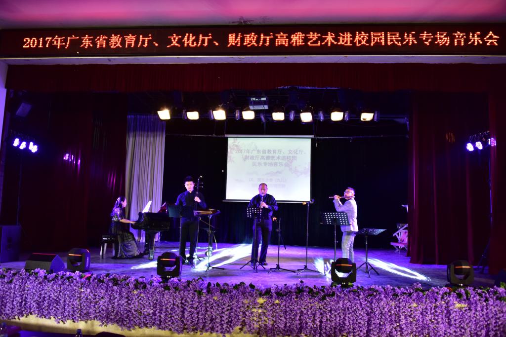 日前,由广东省教育厅、文化厅、财政厅主办的2017年广东省高雅艺术进校园活动在全省各高校举行,我院由音乐学院师生组成的演出团队分别走进汕尾职业技术学院和韩山师范学院举办民乐专场音乐会,星海音乐学院民族声乐系到我院演出。