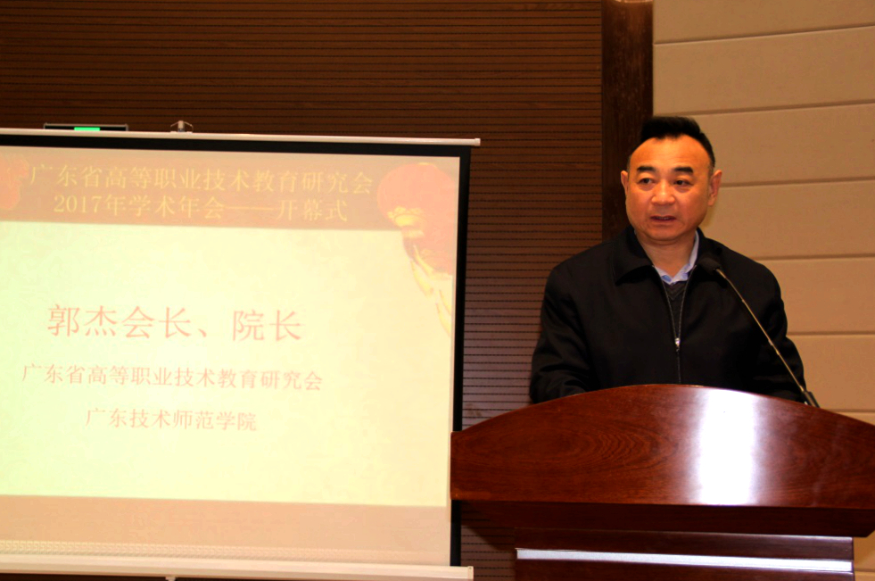 12月23日,由广东省高等职业技术教育研究会主办,广州科技贸易职业学院、顺德现代职业教育研究院承办的广东省高等职业技术教育研究会2017年学术年会,在广州科技贸易职业学院召开。广东省职业教育学会会长李小鲁教授、广东省教育研究院副院长李海东教授、广州市教育局科研处相关领导,广东省高等职业技术教育研究会会长、广东技术师范学院院长郭杰教授,广东技术师范学院副院长戴青云教授,广州科技贸易职业学院院长蒋新革教授、广州科技贸易职业学院党委副书记符莎莉,广东省高等职业技术教育研究会秘书长、广东技术师范学院教育科学与技术学院院长陶红教授等出席了开幕式,来自广东省各高职院校的170余位代表和广州科贸职业技术学院教职工、学生等280余人参加了本次学术年会。