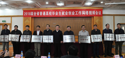 1月16日,广东省2018届全省普通高校毕业生就业创业工作网络视频会议在广州召开,我院获评“广东省大学生创新创业教育示范学校”。会上,省委教育工委书记、省教育厅党组书记、厅长景李虎为高校代表授予牌匾,我院党委副书记詹步强上台接受授牌与表彰。