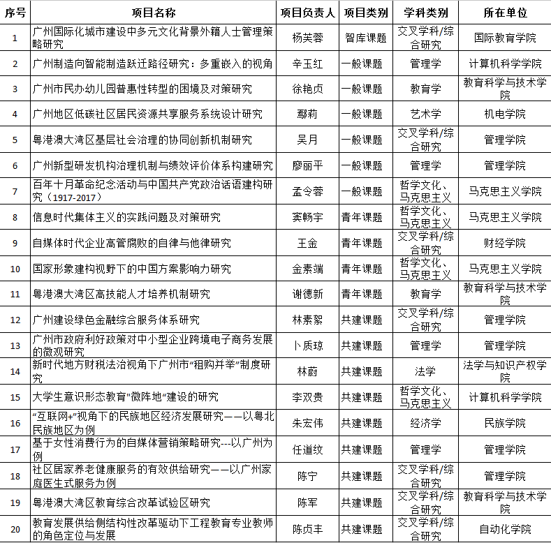 我院2018年广州市哲学社科项目立项情况一览表