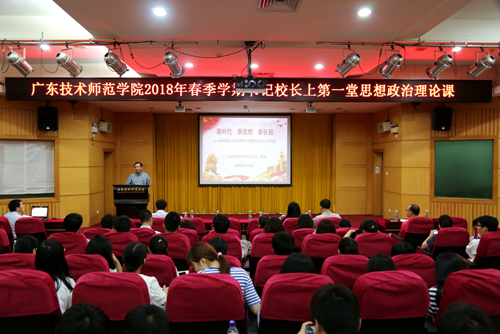 4月12日晚,学院党委书记陈韶在校本部一教208讲学厅为学生上2018年春季学期第一堂思想政治理论课,学院党委宣传部、学生工作部、团委主要负责人,相关二级学院书记、副书记、辅导员和学生代表200多人到场聆听。