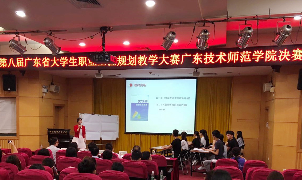为进一步加强我院就业指导课程和教学师资队伍建设,有效促进教师间的教学观摩与经验交流,切实提高我院大学生职业生涯发展与就业水平与效果,大力推进教学创新,同时选拔优秀教师参加第八届广东省大学生职业生涯规划教学大赛,5月21日、25日,我院分别举办第八届广东省大学生职业生涯规划教学大赛广东技术师范学院选拔赛初赛和决赛。