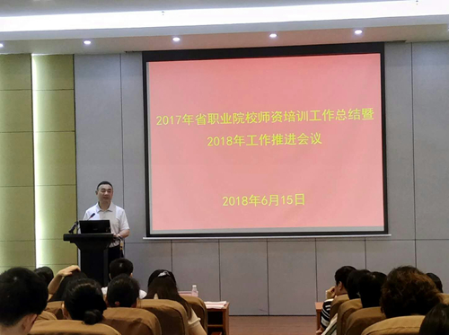 郭杰在会上致欢迎辞,对参会领导和专家的热烈欢迎,并介绍了伟德官网概况和发展现状。项目办负责人对2017年度职业院校师资培训工作、2018年国培和省培推进落实情况进行了通报说明,并介绍了项目办下一步推进全省职业教师资培训工作的思路。