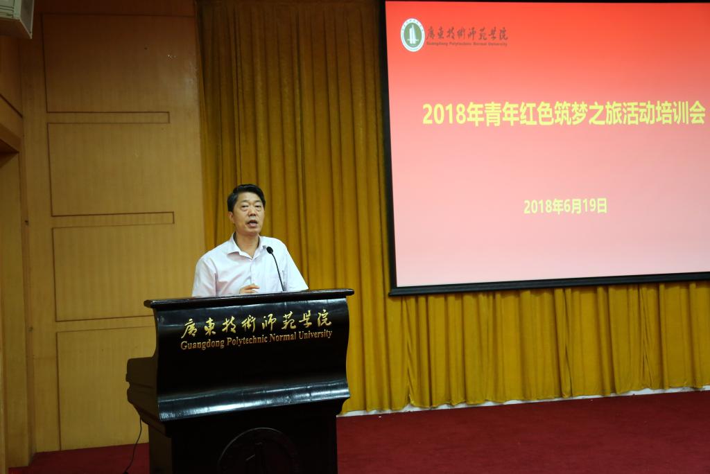 根据省教育厅工作安排和《广东省第四届中国“互联网+”大学生创新创业大赛“青年红色筑梦之旅”活动方案》文件要求,由我院牵头成立并组织实施“青年红色筑梦之旅”之“十九大宣讲小分队”。6月19日,为深入学习宣传贯彻党的十九大精神和习近平新时代中国特色社会主义思想,推动工作进度,学院在校本部一教208讲学厅举行了“青年红色筑梦之旅”授旗仪式暨十九大宣讲小分队辅导报告会。学院党委书记凌靖波、学院院长郭杰、副院长许玲等领导出席会议,党委宣传部、学生工作部、团委、马克思主义学院主要负责人,党的十九大代表陈小花,24支十九大宣讲小分队立项团队负责人和指导老师参加了会议。会议由党委宣传部部长韩柏光主持。