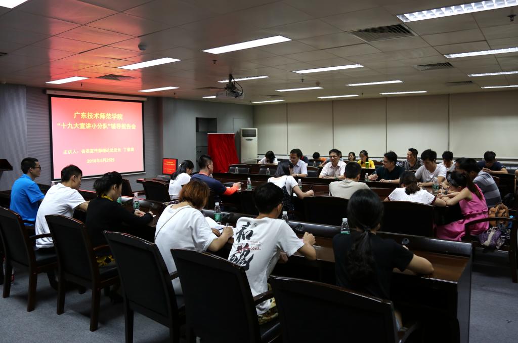 6月25日晚,应党委宣传部邀请,省委宣传部理论处处长丁晋清来到我院校本部工业中心605会议室为“十九大宣传小分队”的师生们作辅导报告。党委宣传部主要负责人,部分二级学院党委(总支)副书记、副院长,24支立项团队指导教师、校本部和西校区学生团队骨干等40多人参加了报告会。