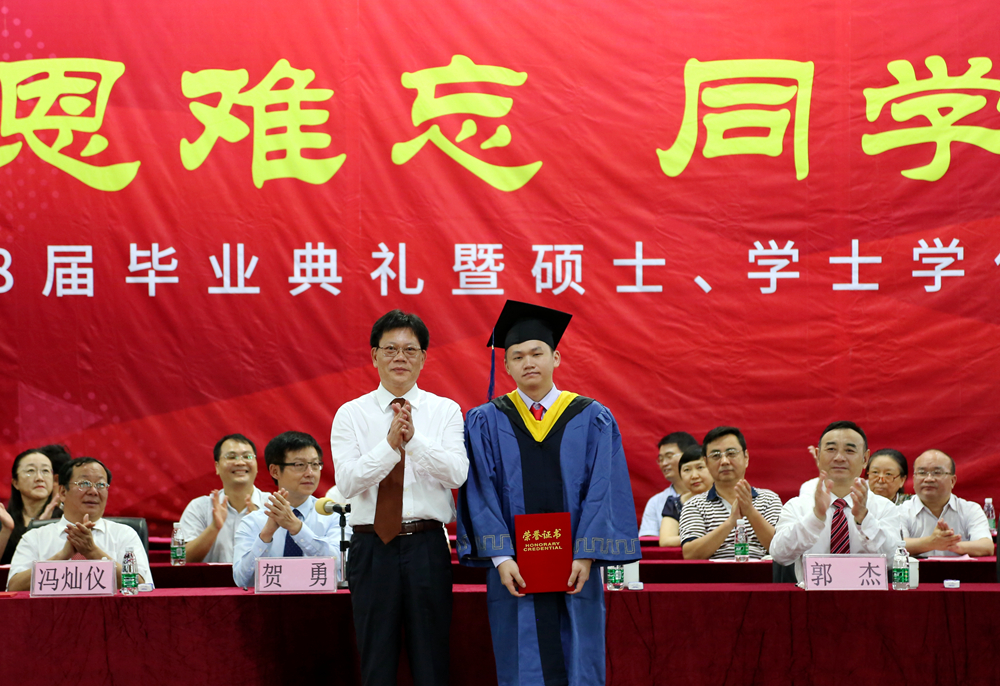 潘自勉、许玲分别宣读了研究生、本专科毕业生相关表彰决定表彰决定。全体学院领导向获得“优秀毕业生”荣誉称号的学生分别颁奖并合影留念。