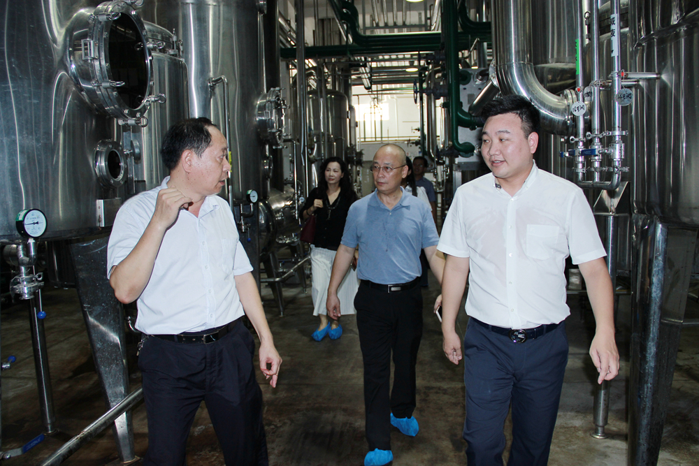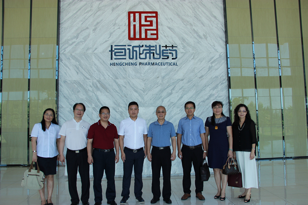 潘自勉一行参观了广东恒诚制药有限公司研发实验室及生产线。谭伟雄校友介绍了恒诚制药集团股份有限公司的规模及发展。集团下属有五家制药子公司,产品涵盖中药前处理及提取、原料药及中药制剂、化药制剂等15个剂型,约400个批准文号,15个独家批文,产品销售网络覆盖全国,部分产品出口德国和东南亚。其中,广东恒诚制药有限公司于2010年被认定为高新技术企业、2011年被认定为湛江市自主创新企业、2012年被列为湛江市五十强企业。