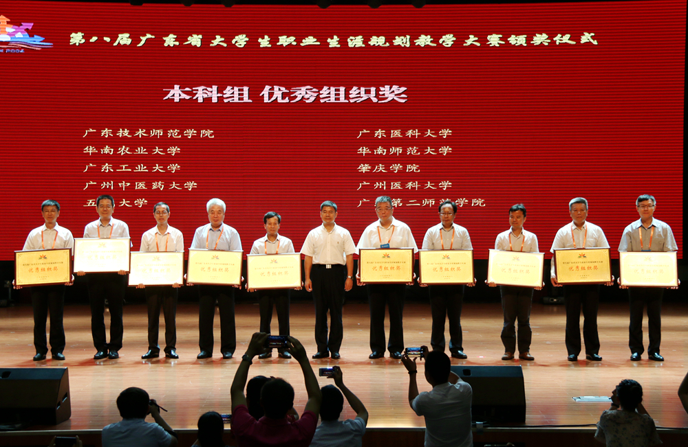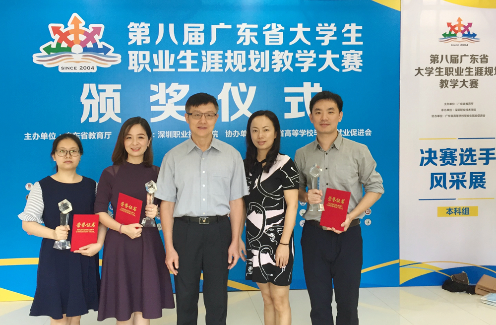 7月8日,第八届广东省大学生职业生涯规划教学大赛颁奖仪式在深圳职业技术学院音乐厅举行。我院党委副书记、纪委书记贺勇出席了大赛颁奖典礼。学生工作部(处)副部(处)长、招生就业办公室副主任郭磊担任本届决赛评委。我院以综合评分第一的成绩喜获本科组优秀组织奖,文学与传媒学院林庆获本科组一等奖及“金牌讲师奖”,招生就业办公室陈薇获本科组一等奖,财经学院袁妍获本科组二等奖。