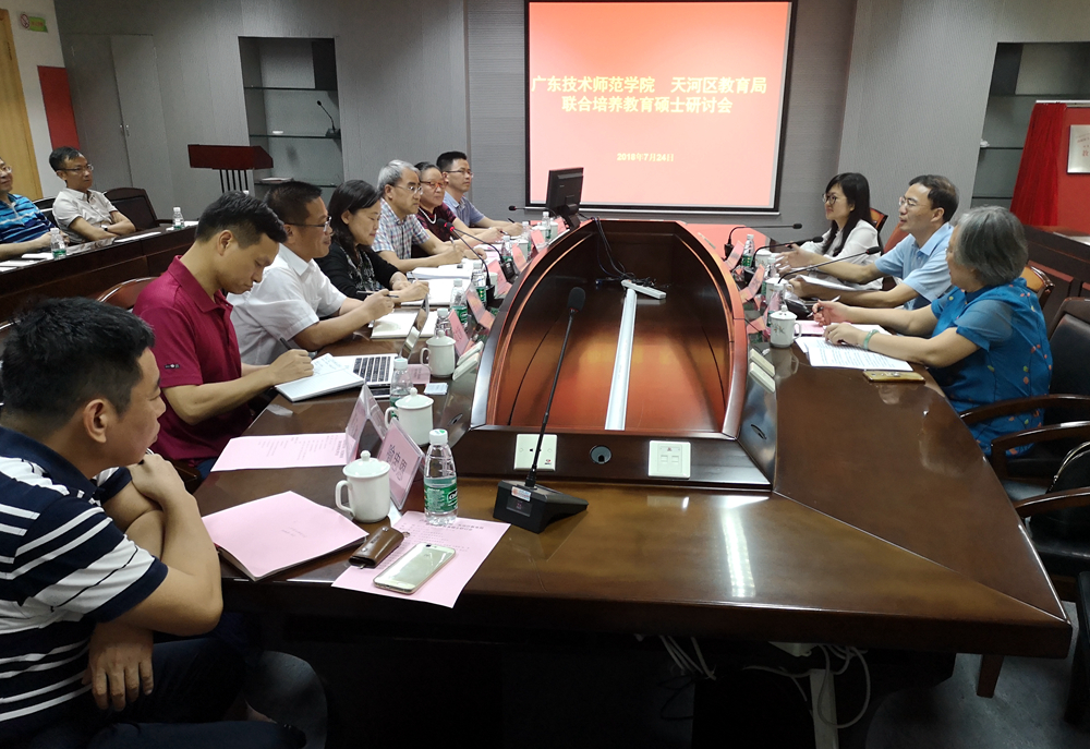7月24日,天河区教育局局长曾东标、副局长谢向红一行3人来我院洽谈教育硕士专业学位研究生联合培养合作事宜,学院副院长戴青云出席会议,研究生处、院办、规划处、教师培训与继续教育学院、职业教育研究院负责人,各教育硕士学科领域(方向)所属二级学院院长(分管研究生教育的副院长)参加了会议。会议由研究生处处长崔怀林主持。