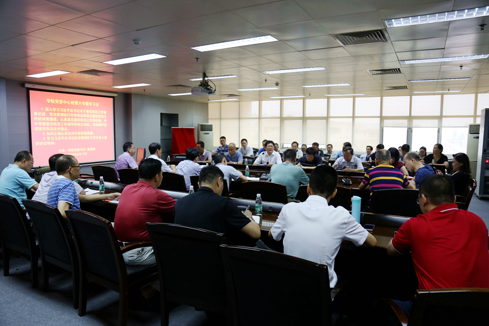 为落实省委总的巡视整改工作方案,推进解决中央第十二巡视组反馈广东省委落实意识形态工作责任制中存在的省委和各级党委传导意识形态责任制压力不足,措施不够有力,责任落实逐级弱化的问题,8月17日,学院党委中心组召开第六专题学习会,深入学习习近平总书记关于意识形态工作重要论述, 坚决贯彻执行中央和省委有关意识形态工作的决策部署,认真落实意识形态工作责任制,牢牢掌握意识形态工作领导权和主动权,切实维护校园意识形态安全稳定。党委中心组全体成员参加了会议。