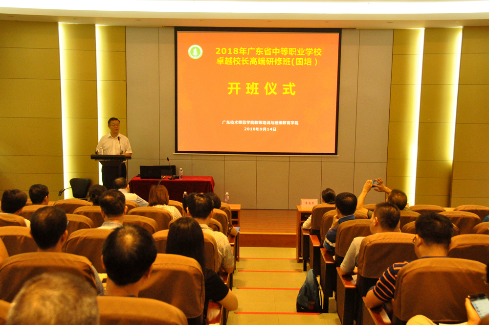 9月14日,我院举办2018年广东省中等职业学校卓越校长高端研修班,全省各地中职学校正、副校长共计39人参加本次培训。教师培训与继续教育学院院长覃易寒主持仪式。