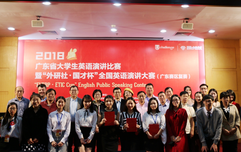 11月10日—11日,由广东省教育厅、广东省本科高校大学英语课程教学指导委员会、广东省本科高校外语类专业、外语教学与研究出版社、北京外研在线教育技术有限公司主办,教育部高等学校大学外语教学指导委员会、教育部高等学校英语专业教学指导分委员会、中国外语教育研究中心合办,广东技术师范学院承办的广东省大学生英语演讲比赛暨“外研社▪国才杯”全国英语演讲大赛(广东赛区)圆满落幕。经过激烈角逐,来自中山大学、吉林大学珠海学院的3位选手获特等奖,并将于12月代表广东赛区参加在北京举办的2018“外研社▪国才杯”全国英语演讲大赛决赛。我院参赛选手周冰雪、陈浚锵、刘海伦和黄思斯获三等奖。我院获优秀组织奖。