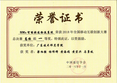 获得一等奖的团队是:梁柏强、杨伟锋、黄海娟、黄宏兴、马勇枝(指导老师陈荣军、吕巨建、赵慧民);获得二等奖的团队是:陈伟坚、梁柏强、王奕聪、马学枝(指导老师陈荣军、王磊军、赵慧民),获得三等奖的团队是:徐献圣、杨敏、于永兴、李绮桥、罗双科(指导老师陈荣军、赵慧民)。其中,梁柏强团队还获得了黑科技奖。