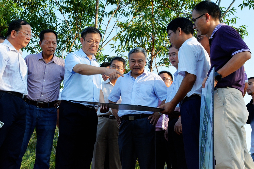 座谈会前,凌靖波、骆少明一行在叶梅芬、庞启彪及河源市有关部门负责同志的陪同下察看了河源校区新选址现场。