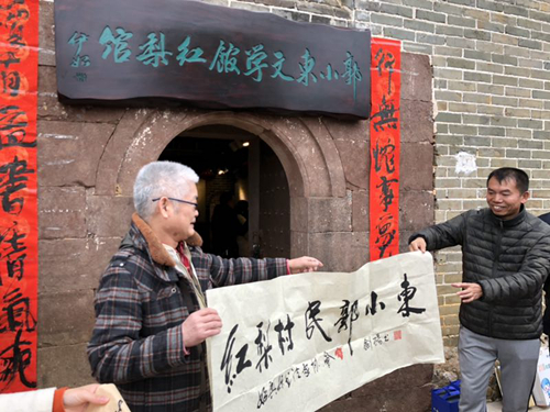 开馆仪式上,红梨村代表把“红梨村村民郭小东”的横幅赠送给郭小东教授。始兴县领导也向郭小东教授赠送了“九龄文丛”等反映始兴文史成就的书籍。随后,出席仪式的嘉宾和村民、游客一同参观了广东作家手稿展。