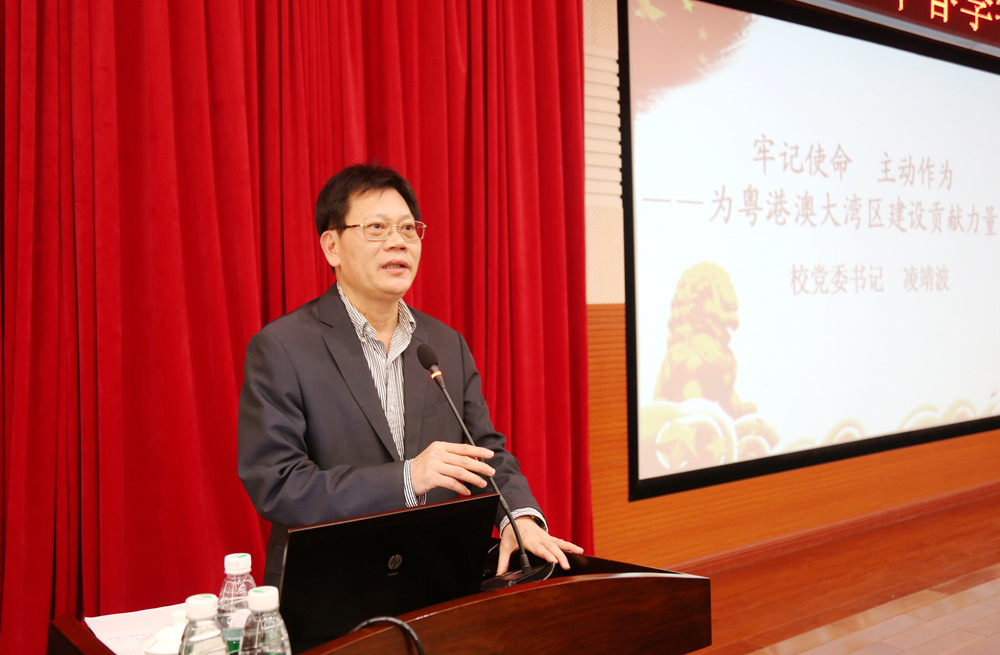 凌靖波讲课的题目是《牢记使命主动作为——为粤港澳大湾区建设贡献力量》。
