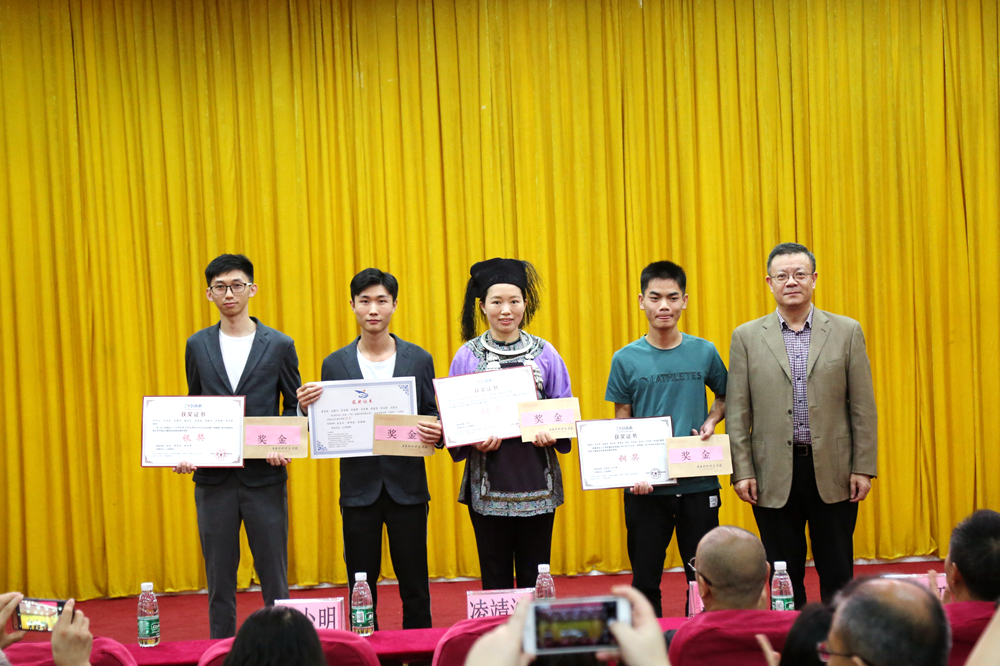 会议为获得2018年省级以上“互联网+”大学生创新创业大赛、“创青春”大学生创业大赛优异成绩的师生颁发证书和奖金;同时对获得伟德官网2018年创新创业工作优秀组织单位颁发牌匾和奖金,其中自动化学院、计算机科学学院、美术学院、民族学院获得优秀组织奖,自动化学院还获得优创杯。