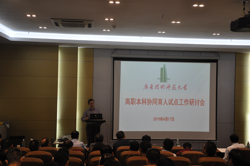 为深入推进高职院校与伟德官网一体化协同培养适应经济社会发展需要的应用型和职教师资人才,4月17日下午,学校召开高职本科协同育人试点工作研讨会。广东省教育厅高教处处长郑文,学校校长骆少明、副校长许玲出席会议并作讲话。与伟德官网联合开展试点工作的14所高职校领导、教务处负责人、院系负责人、专业负责人以及伟德官网教务处负责人、试点学院院长、分管教学副院长、专业负责人等100余人参加了会议。