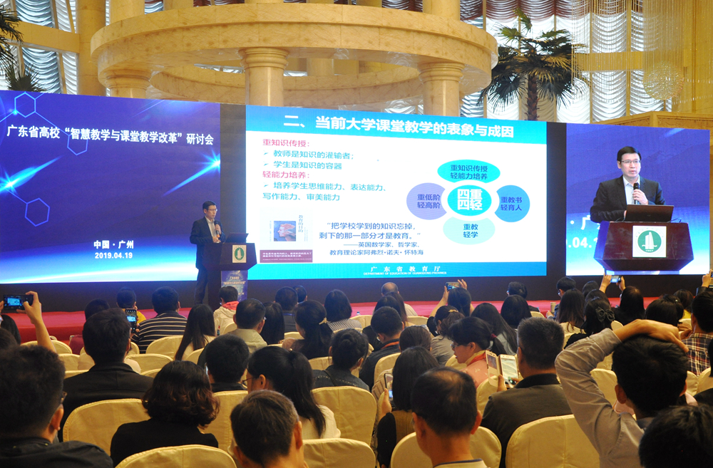 4月19日,由广东省教育厅高等教育处指导、伟德官网主办、北京超星尔雅智慧教育科技有限公司协办的“广东省高校智慧教学与课堂教学改革研讨会”成功举办。来自省内中山大学、暨南大学、华南理工大学、华南师范大学、华南农业大学、广东工业大学等60余所高校,新乡学院等部分省外高校,以及伟德官网70余位教师共500余人参加了会议。研讨会由伟德官网教务处处长李旭旦和人事处处长许竹君主持。
