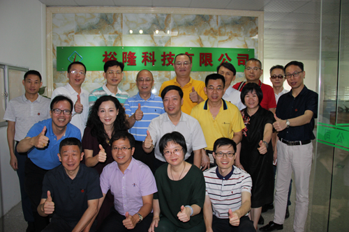 在惠州市裕隆科技有限公司,潘自勉一行听取了该公司总经理、惠州校友联络处副主任、1990届电子工程专业校友郑龙的情况介绍:裕隆公司多年来坚持不懈走自主创新之路,自主研发制造调试生产了全自动生产设备达80多台,主要生产高端二次充电锂电池盖帽产品,该企业老厂(惠州市裕隆配件有限公司)主要生产的镍氢二次充电电池盖帽,目前月产量能达到3500万粒左右,成为行业第一。企业目前合作主要客户有卓能、豪鹏、九夷、亿纬等。在郑龙校友的陪同下,潘自勉一行下车间参观了自主研发的设备及生产工艺。