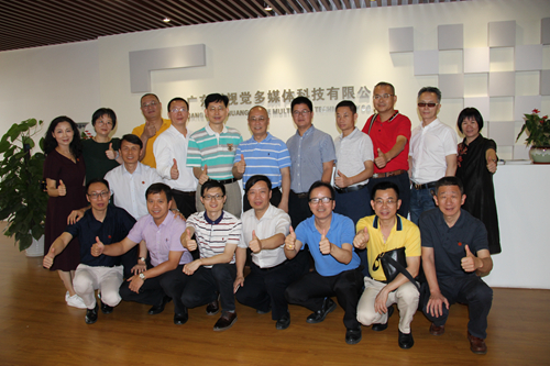在参观广东创视觉多媒体科技有限公司时,广东创视觉多媒体科技有限公司总经理、惠州校友联络处副主任、2007届信息管理专业校友邹志向,向潘自勉一行介绍了该公司以空间设计为核心、以数字创意为手段、为客户量身定制声、光、电多媒体软硬件内容集成及创意规划综合服务,着重介绍了公司全息投影、特种幕等产品技术,并让潘自勉一行体验了多媒体智慧教室设备共享、信息共享、资源共享的先进和便利。