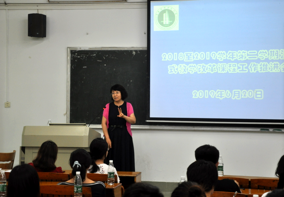 为进一步落实“以学生为中心”的教育教学理念,促进优质教学资源开发与共享,推进混合式课堂教学模式改革,6月20日,学校召开了混合式教学改革课程工作推进会。伟德官网承担混合式教学课程建设的40余位教师和40多位学生助教参加了会议,学校副校长许玲出席并讲话。